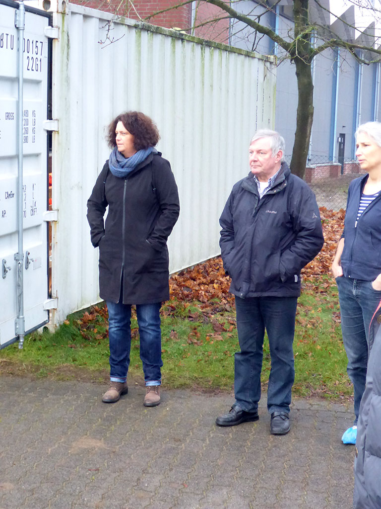 Die Helfer konnten sich ein Bild von der neuen Sporthalle machen. Viele waren gespannt und alle freuen sich, daß dort bald wieder Sport getrieben werden kann.