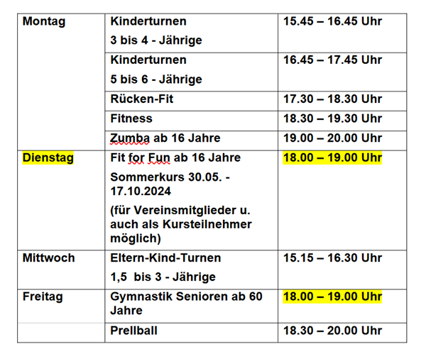 Grundsätzlich findet in den Sommerferien in der Turnsparte kein Sportangebot statt.